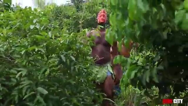Watch this African king of a tribe. He takes his queen to the jungle. When he gets horny, he squeezes his queen's boobs in front of his soldiers and fucks her.