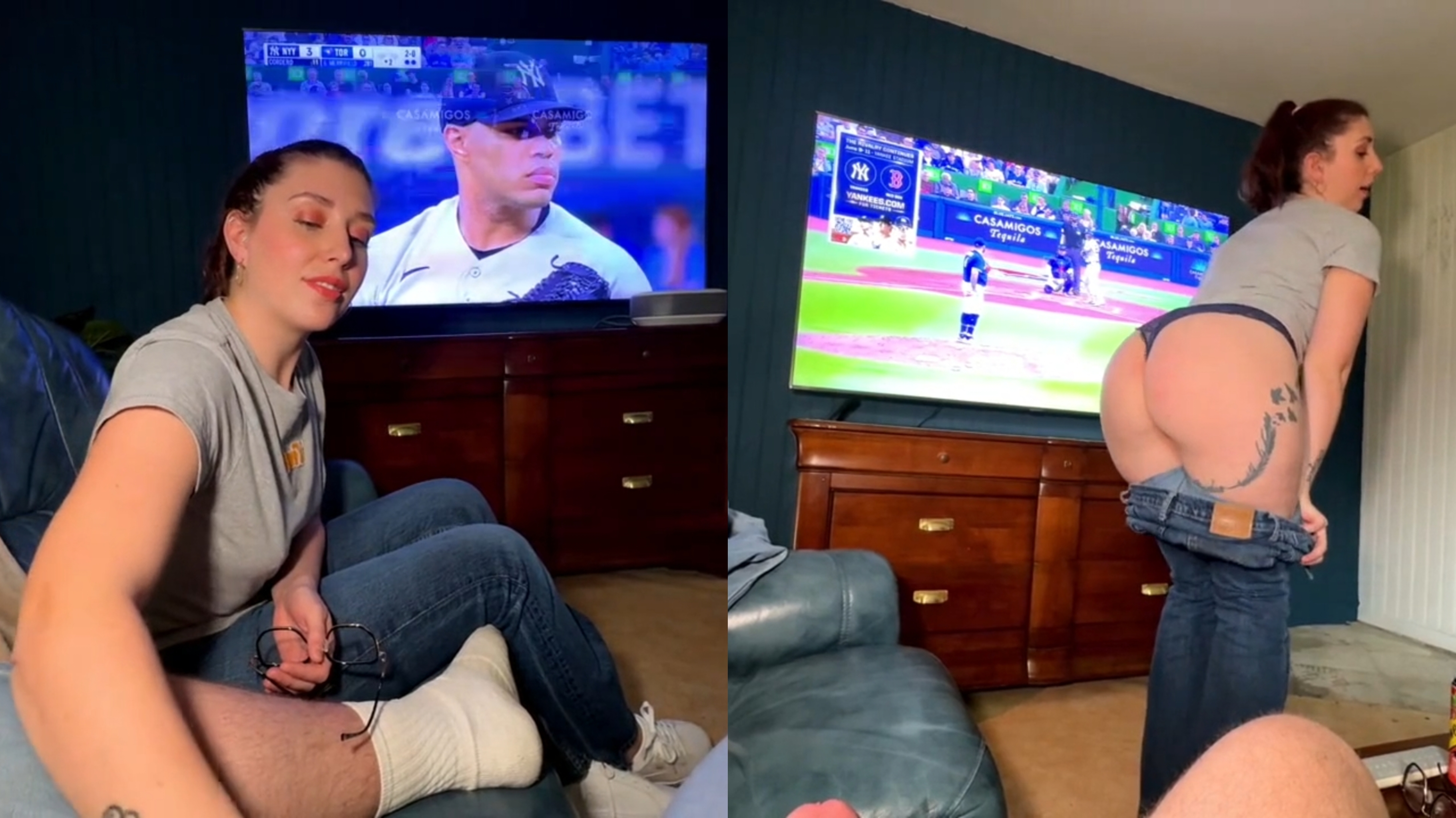 A beautiful daughter watches TV with her stepdad where she seduces him with her hot ass, then tricks him with his money, and so, he loved to ride her big white booty, and then she exposed her big ass where he is ready with his man's cock, and then she sits on his dad's big adulthood cock where he fucks her ass with cowgirl position.