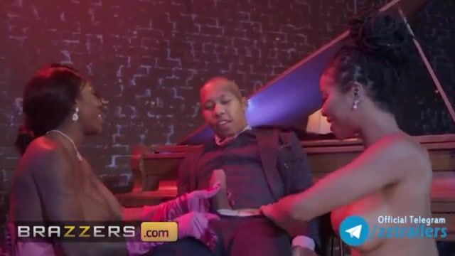 A horny black couple persuades a black milf. They make the milf naked and squeeze her big melons. Soon, they all get naked and fuck like crazy.