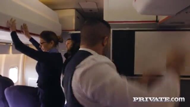 A blonde girl was horny and she wanted a dick. When she was on a plane, she saw a guy staring at her. The blonde took his dick in her mouth and got fucked.