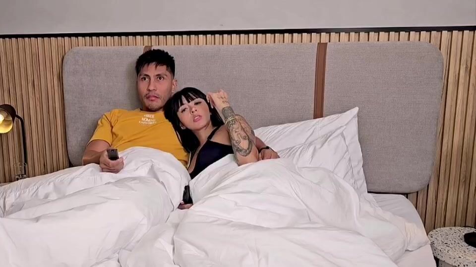 A hot Spanish girl sleeps with her husband when her brother sneaks into her bedroom while his AC is not working in his bedroom, and so he shares her sister's bed. He then grabs his sister's wet pussy while she handles his erected dick and sucks his hard dick. After an incest bowjob, he fucks her wet pussy undersheet and creampies into her vagina.