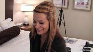 A teen college girl wanted to be a pornstar, and it was her first shoot. She sucked a man's dick in front of a camera and got fucked fucked by him.