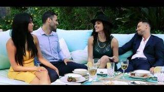 Two kinky couples meet for wife swapping. They have done it before. They speak for some time, and then they all go to the jacuzzi. They all get naked and enter the jacuzzi. The dirty wives kiss each other and make the men's dicks hard. The men switch their partners and fucks in the foursome.
