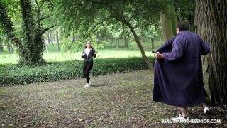 A creeper saw a hot lady. She was jogging in the park. The creeper showed his boner to her. The lady saw the boner. She got horny and fucked by the creeper.