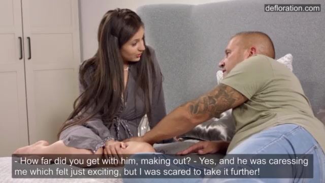 A sexy young girl wanted to lose her virginity. She approached her friend's brother. She had a crush on him. She went to his home, seduced him, and fucked him.