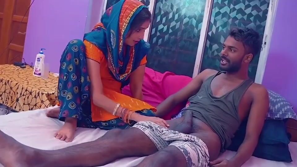 An Indian sexy homemaker alone with her stepson at home while she sneaks into his bedroom while he watches porn videos and jerks his black cock, and then she consoles his sexual desires while she starts to suck his dick and bows his erected dick and then both of them have hardcore sex. He finally pours his cum into his mother's pussy.
