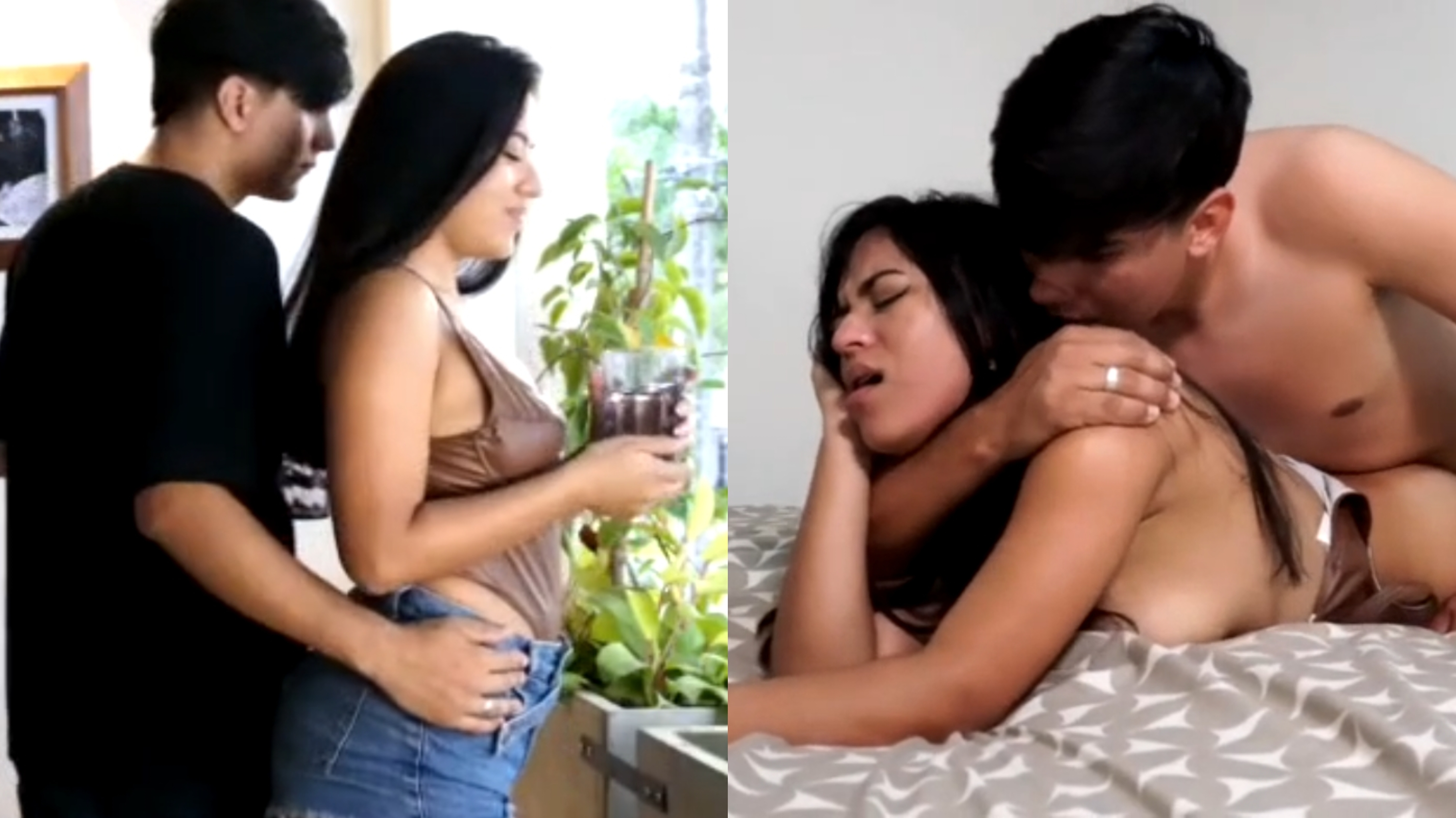 A big boobs college girl shares a room with her close friend and one night, both of them shared the single bed where he approached her, and she loved to co-operate with him. Both of them enjoy passionate sex where he grabs her big boobs while riding her wet pussy and enjoys doggy sex. Finally, he creampies into her vagina.