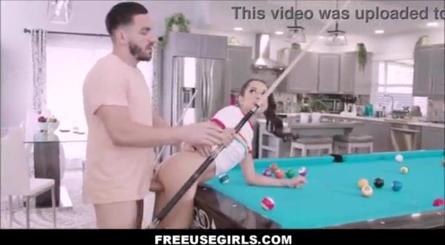 A guy sees his stepsister masturbating. He also gets horny. He asks her to play pool. While playing the pool, the pervert fucks his stepsister.