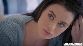 A sexy secretary was swimming at her boss's pool in his absence. When the boss came, he saw the secretary and fucked her hard in the water and on the couch.