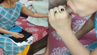 An Indian young woman is alone with her sister's husband, and he sneaks into his wife's sister's bedroom, then he seduces her with his big cock and takes a sex lesson with his amateur girl. She handles his big adulthood cock, and then he drills her hairy virgin pussy in various positions, then creampies into her vagina.