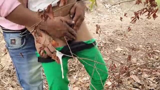 A dirty young Indian couple goes to the jungle. The pervert BF puts his hand on her boobs and squeezes them. When the girlfriend gets horny, the pervert removes her lower and makes her naked. Later, the boyfriend fucks his slut girlfriend like a cheap whore. At last, he cums in her pussy.
