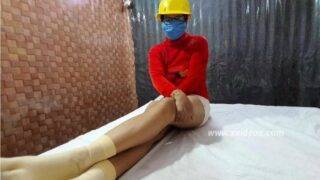 A lady civil engineer got horny during her work. She called her manager and took him to a separate room. She made his small dick hard and rode on it.