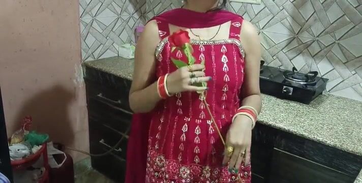The girlfriend planned a surprise for her boyfriend by holding a rose in her hands. She pondered what gift to give him and decided to cover herself in chocolate syrup, making herself a delicious treat.