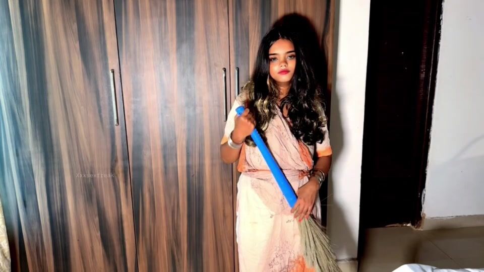 Big ass hindi wife work as home maid and her house owner trick her for rough sex so he grabs her big boobs and he then insert his big cock into her mouth, she blow his big manhood cock after that he start to ride her juicy ass and cums into her horny pussy.