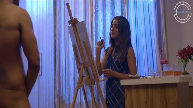 A sexy lady was portraying a nude painting. For the painting, she had convinced her friend. Soon, they both got horny and the model fucked the painter.