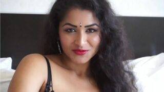 A busty Indian whore wore sexy lingerie. She stripped in front of her webcam. She showed her big boobs and ass to her lovers. Later, she got naked.