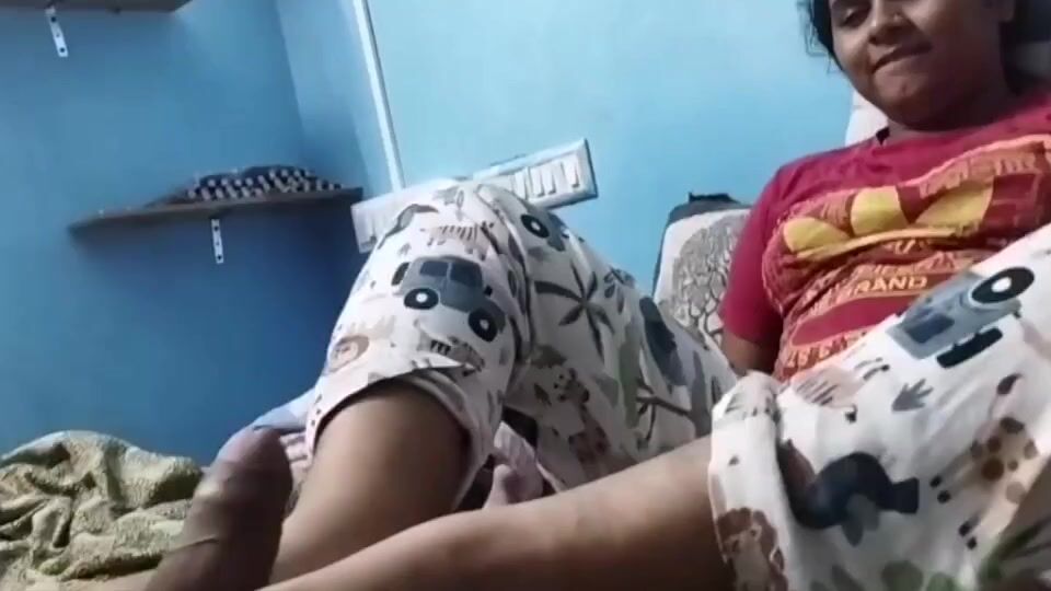 A young, newlywed couple from Kerala are alone in their home when she takes off her T-shirt and reveals her tits. She then handles her husband's cock and grabs his adult cock, which he fucks in a missionary position. He then drills her pussy while hitting her g spot, causing her tits to bounce before he cums into her vagina.