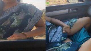 An Indian Marathi married woman asks to lift in a stranger's car while she seduces him with her desi boobs, and then she looks so sexy in her blue dress. After she gets into his car, she exposes her hair pussy while she mastats her wet pussy, and he masturbates his dick, then cuts into the car while she ruins outdoors outdoors outdoors.
