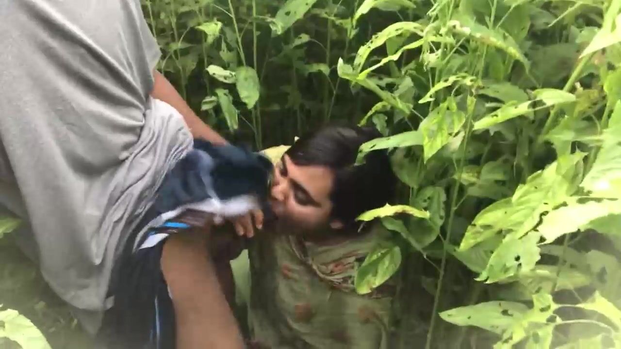 Asian Girlfriend gives hot blowjob amist Tall grass