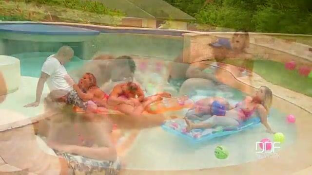 Two slut girls were playing in the pool with their three pervert friends. While playing, they all got horny. The girls started sucking dick, and later, they fucked in a group.