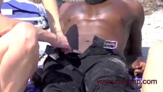 A Spanish milf rubs her friend's pussy in public. A black guy sees her and seduces her. He convinces her to suck his dick on the beach. The milf gets ready. The black guy shows his BBC to the milf. The horny milf gives him a handjob and sucks his hard BBC in public.