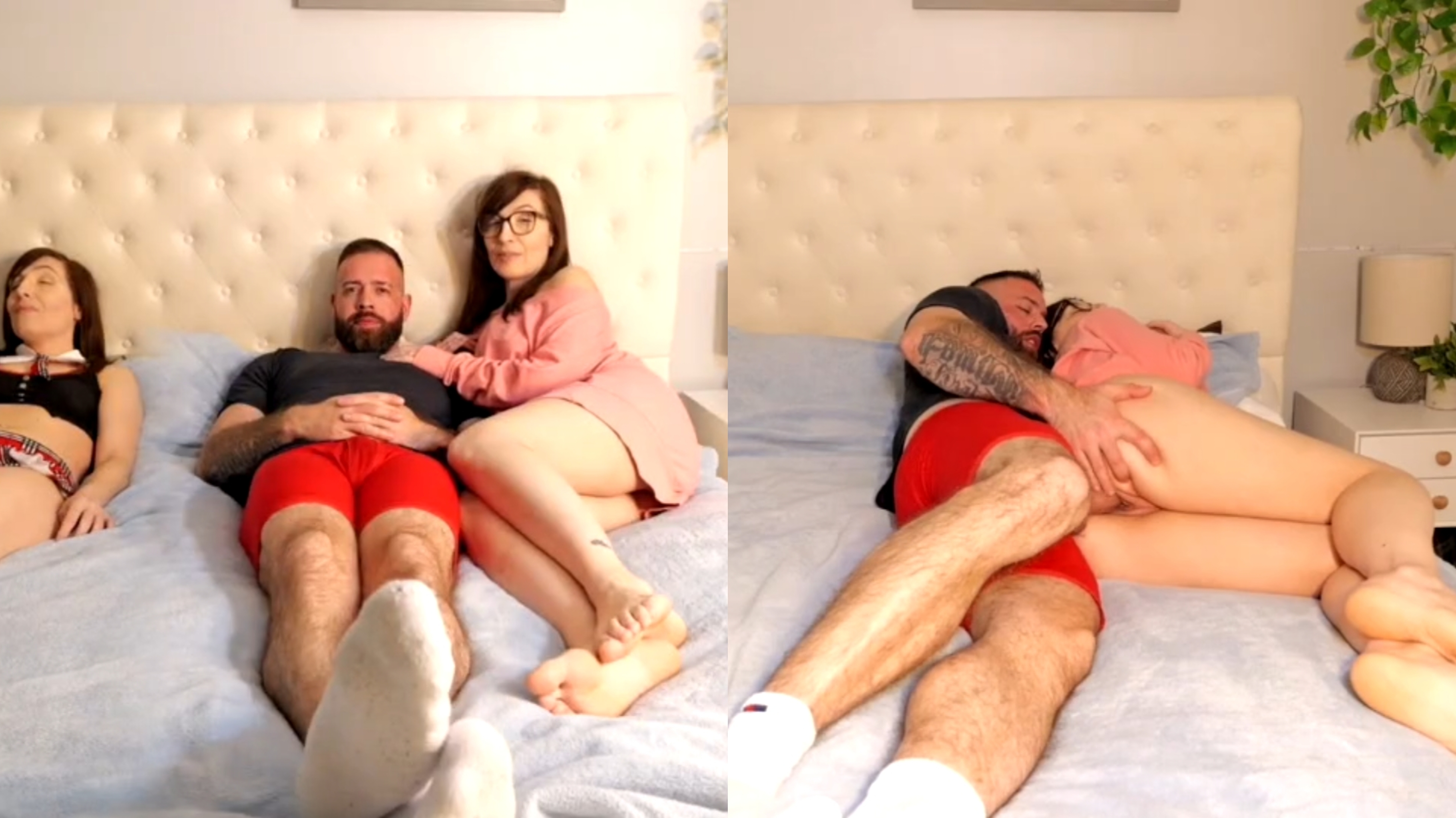 Stepson sleeps between stepmother and stepdaughter