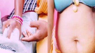 While her stepson is taking a break and relaxing on his bed while masturbating his dick, a dusky-beautiful Indian stepmother in Telugu creeps into his bedroom. After slinking into the bedroom, she grubs his dick after touching his large adult cock. After assisting him in masturbating, she takes off her dress and gives him a nice handjob while revealing her delicious tits and navel.