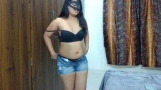 Watch this Telugu girlfriend, in just a bra and jeans, begins to rhythmically sway her body, dancing seductively. She slowly removes her black bra, then peels off her tight jeans, taking a moment to play with her rounded, pointy boobs. Eventually, she strips down to nothing and reclines on the bed, spreading her legs to expose her pussy. She begins to finger herself, indulging in her own body.