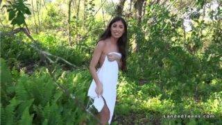 A young girl was near a river. She was stucked in a problem, and a stranger helped her. The young girl took him to her tent and fucked him hard.