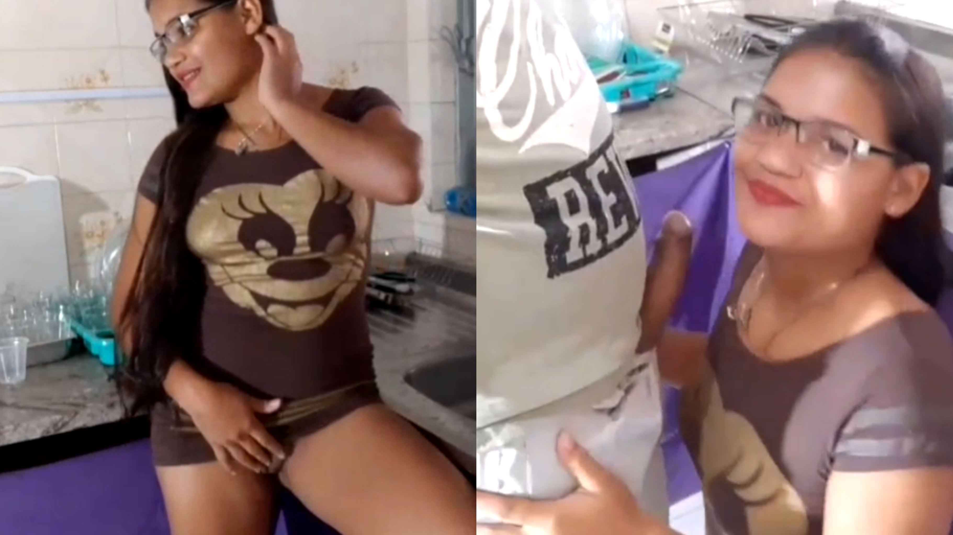 In the absence of her mother, she worked as a maid in her mother's owner's house, where she was busy in the kitchen. Her owner's son sneaks into the kitchen and convinces her for a rough blowjob. After she gave a deep throat oral sex. Heat he started to fuc her pussy with his erected dick and rides her white ass finallye she gets a facial.